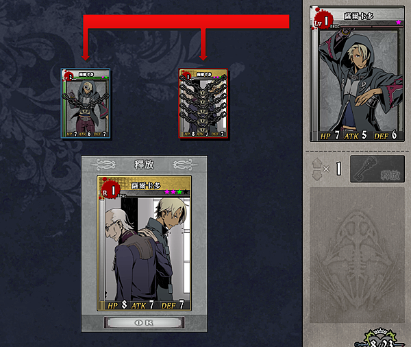 「拜託你這無知的人偶大小姐多看點書長點腦袋吧!不管怎麼看旁邊那個帥青年才是我吧!何況高額頭有什麼不好!不准妳汙辱高額頭!」薩爾卡多忍了心中第數百次想把大小姐鋼絲處刑的想法,原因就在於他的上司下令希望他們能和平相處,所以在怎麼惡言相向也不會武力出手的。