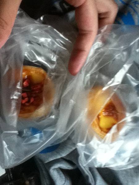 我買了兩個蛋塔來吃。
