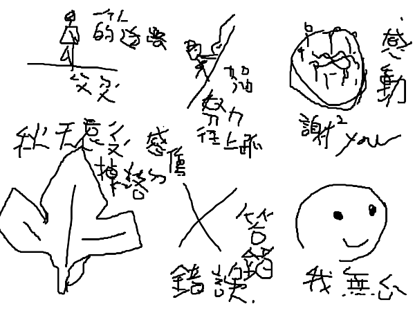 畫完後再發揮想像力,看要畫成什麼東西都可以,但要寫這圖代表什麼意思,用一句話。